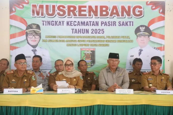 LAMPUNG TIMUR – Bupati Lamtim Ela Siti Nuryamah memberikan sambutan sekaligus membuka acara Musyawarah Pembangunan (MUSRENBANG), dengan Tema “Memacu Pembangunan Infrastruktur Dasar, Pelayanan Publik dan Sumber Daya Manusia Untuk Pertumbuhan Ekonomi Berkualitas Menuju Lampung Timur Makmur” Acara yang berlangsung Aula Kecamatan Pasir Sakti, selasa (11/03/2025).